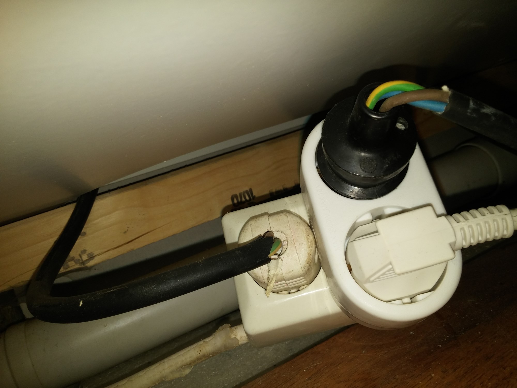 - kablene på bildet er ikke riktig montert på støpselet, ledningene er godt synlig flere centimeter utenfor støpselet, noe som tyder på at det ikke er montert av fagfolk (støpsel kan påmonteres av ufaglærte, men i dette tilfellet gir det en god pekepinn på at det ikke har vært fagfolk involvert)