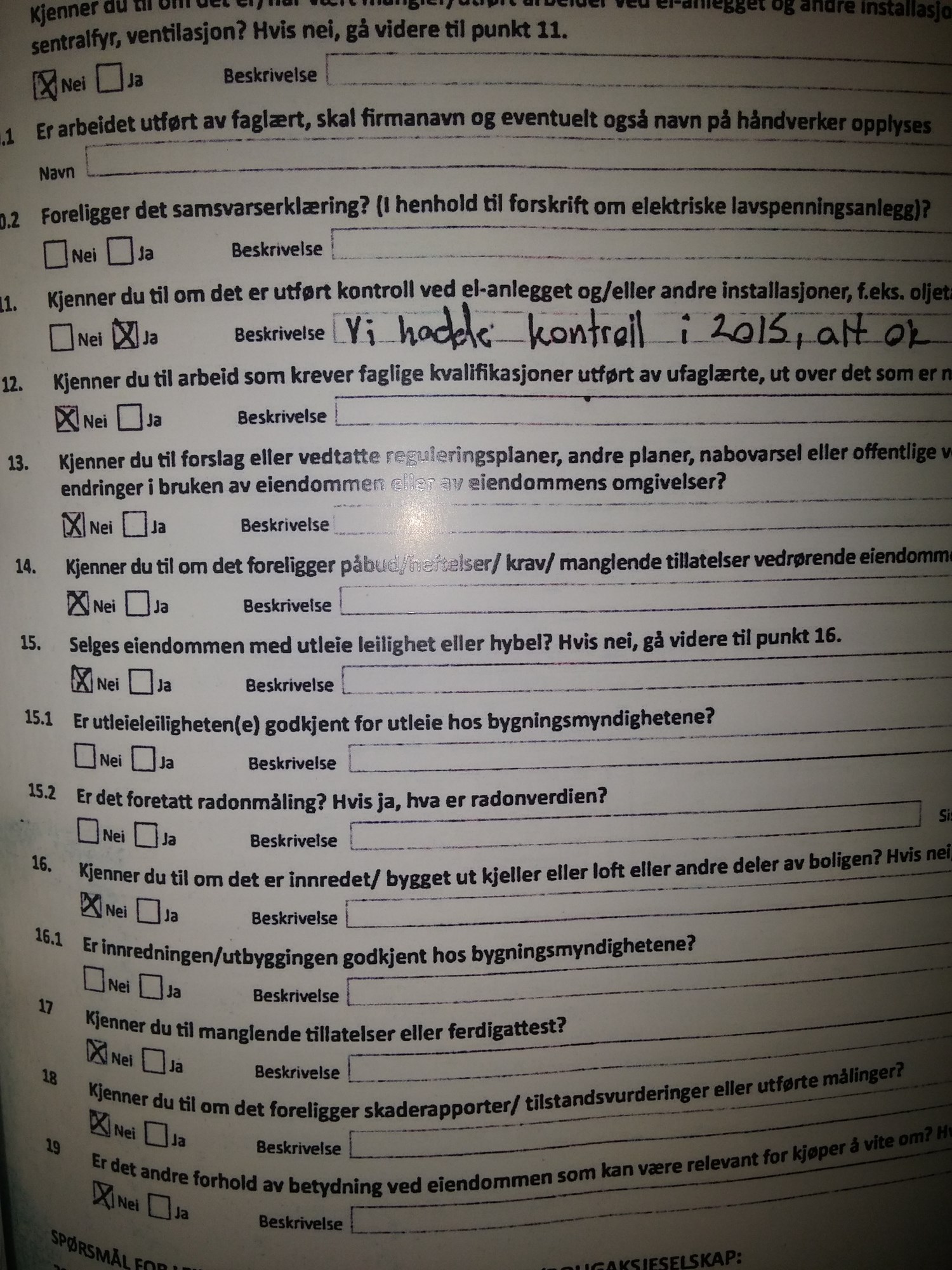 Jeg har akkurat kjøpt leiligheten, og det eletriske anlegget ble kontrollert i 2015 uten mangler (står det i kontrakten vertfall)