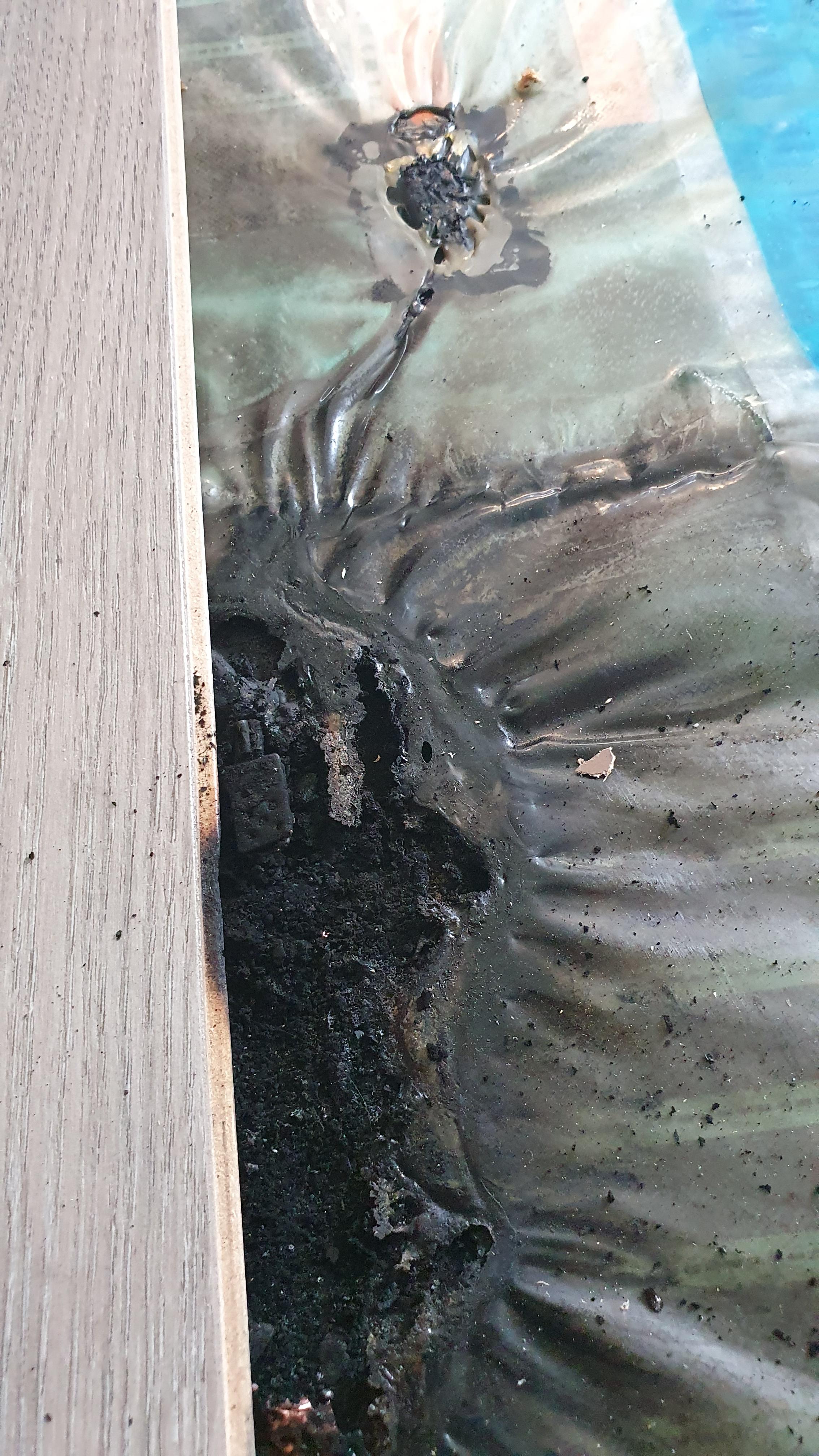 Har dette i min egen bolig, men er ikke akkurat overbegeistret for denne type tilkoblingsklemmer. I dette tilfellet kan man ha vært heldig ettersom tilførsel av oksygen er marginalt så lenge det ikke var svidd hull i gulvet.