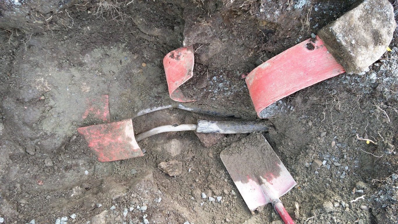 For fremtiden så er anbefalingen å absolutt ikke grave noe mer rundt en slik "hendelse" det kan fort ende med fare for liv og helse. Å grave videre er bare toskeskap deluxe. En bør med en gang sikre området og kontakte eier/kraftlag.
