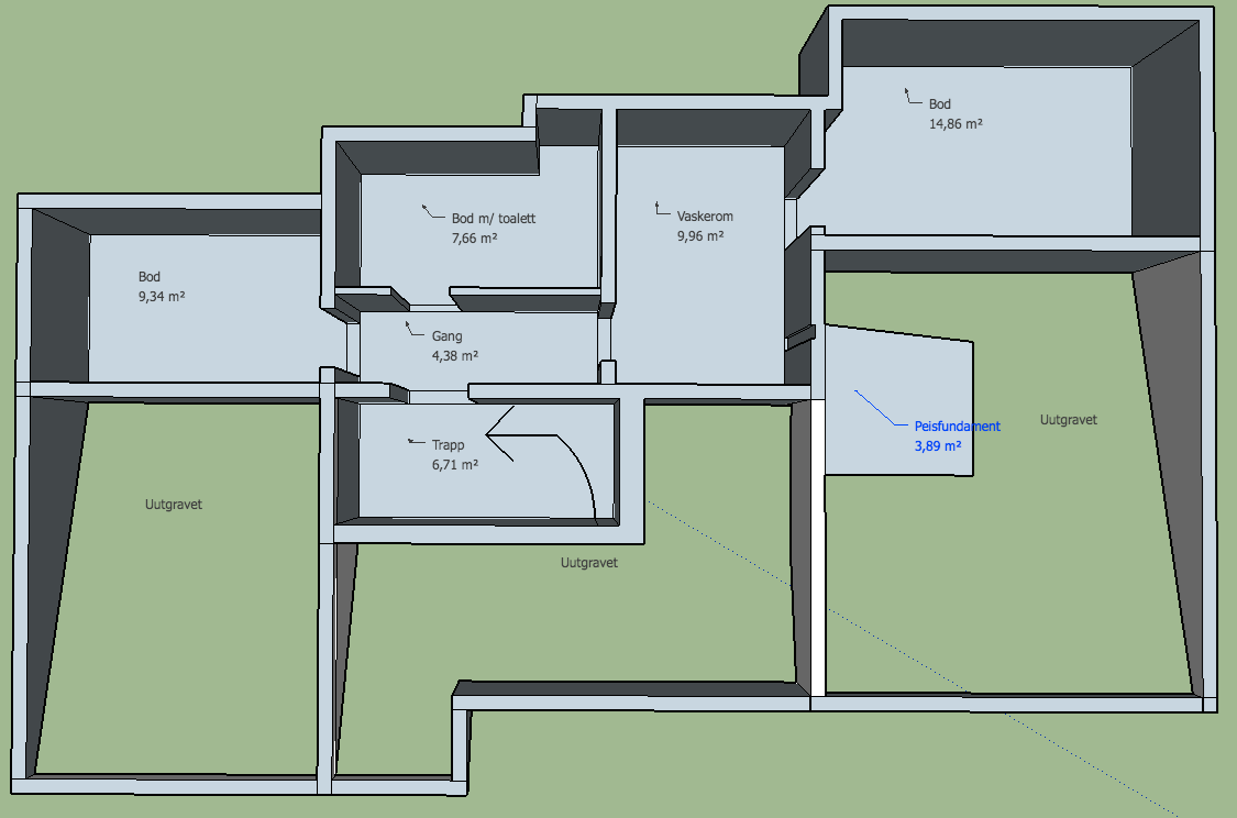 2. Senking av gulv i eksisterende rom (55kvm ca)