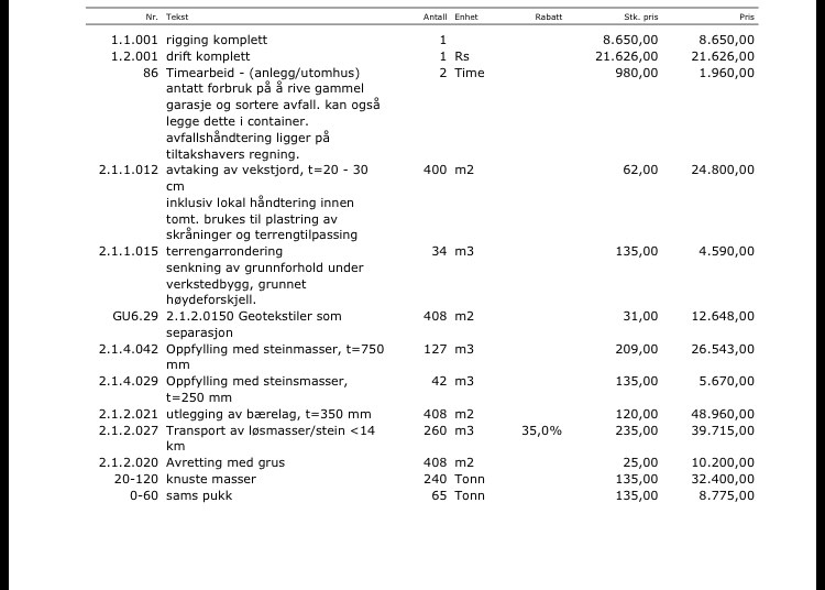 Har fått pris på grunnarbeid hos meg ifm. bygging av to garasjer.
