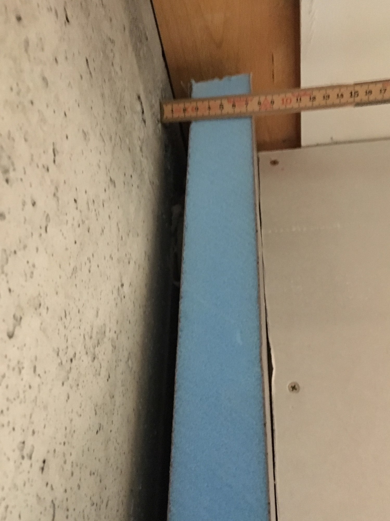 Så til spørsmålet, hvordan skal jeg bygge opp veggen på innsiden nå? Vil bygge ut veggen ca. 10cm fra der den er nå, da veggen som var der før bygget så mye, og takplatene dermed slutter på det punktet. Har tenk noen tanker og kommet opp med noen alternativ, men er åpen for andre forslag.