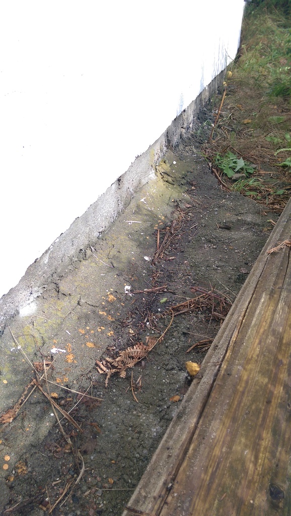 Ser ut som det ligger murpuss utover fra grunnmuren,