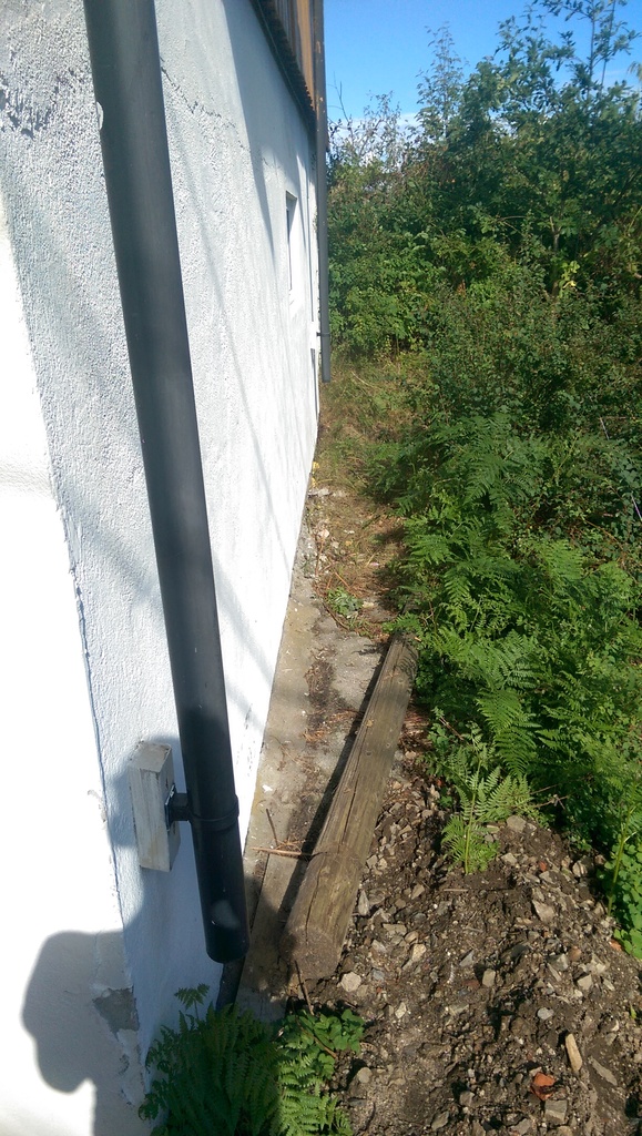 På denne siden er det ei lita skråning mot naboen (gammel grunnmur)