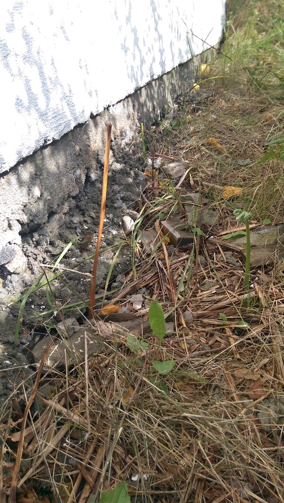 Vel da har jeg snakket litt med naboen, og huset står på fjell. Pukk/steinmasse og støpt oppå den igjen. Er bare ca 1m med jord før en treffer steinmassen og alt av jord er lett å spyle vekk og forsvinner ned i bakken en plass. Så virker som moderjord hjelper til litt og.