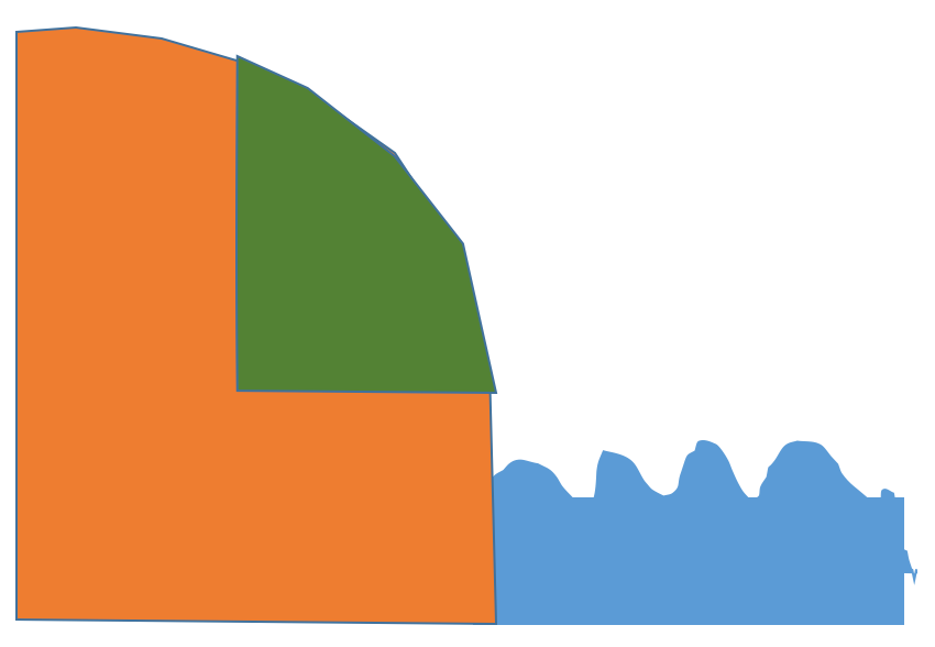 Sett fra siden, det blå er sjøen, det oransje er fjellet, det grønne er hva jeg vil ha sprengt vekk.