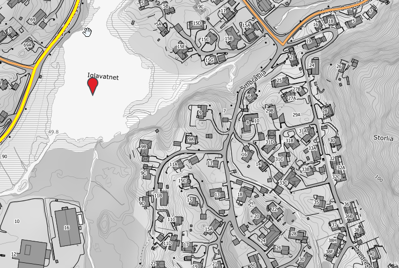 I vedlagt bilder bor vi i den "grå" område, nok vekk fra offentlige veier. Fylkesvei er gule og kommunale veier er oransje.