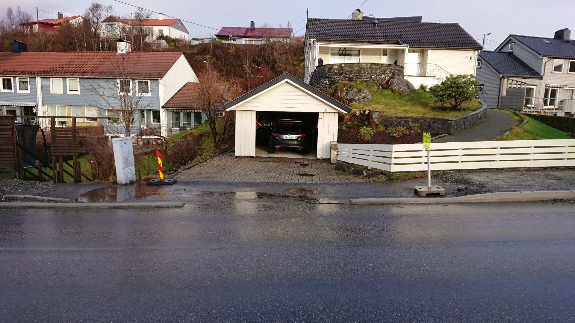 Jeg har snakket med vedkommende i kommunen som har ansvaret for dette og personen der ser ikke helt problemet med at jeg må bompe bilen på denne kanten hver gang jeg skal inn og ut av garasjen.
