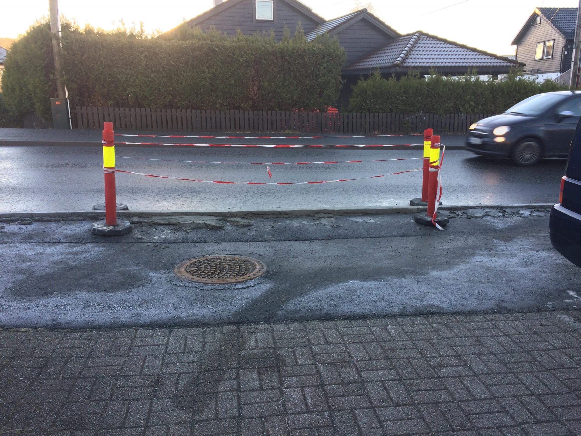 Bergen kommune har utvidet fortauet i hovedeien foran huset mitt. Det er i grunn flotte greier, men nå har de støpt en sammenhengende fortauskant (skal senere asfalteres) rett over innkjørselen min.