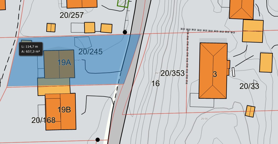 Tomta vår strekker seg ca 2,5 meter inn på kommunal vei. Dette utgjør ca 50 Kvm, og stjeler verdifull plass i fht hage/ plassering av garasjeanlegg mv.
