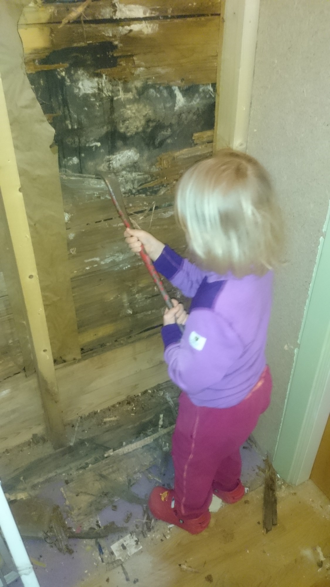 Etter dette ser jeg for meg at jeg må få gjort noe med "problemhjørnet". Det er vel strengt tatt egentlig en bærevegg, så den burde nok ikke være så morken som den er...
