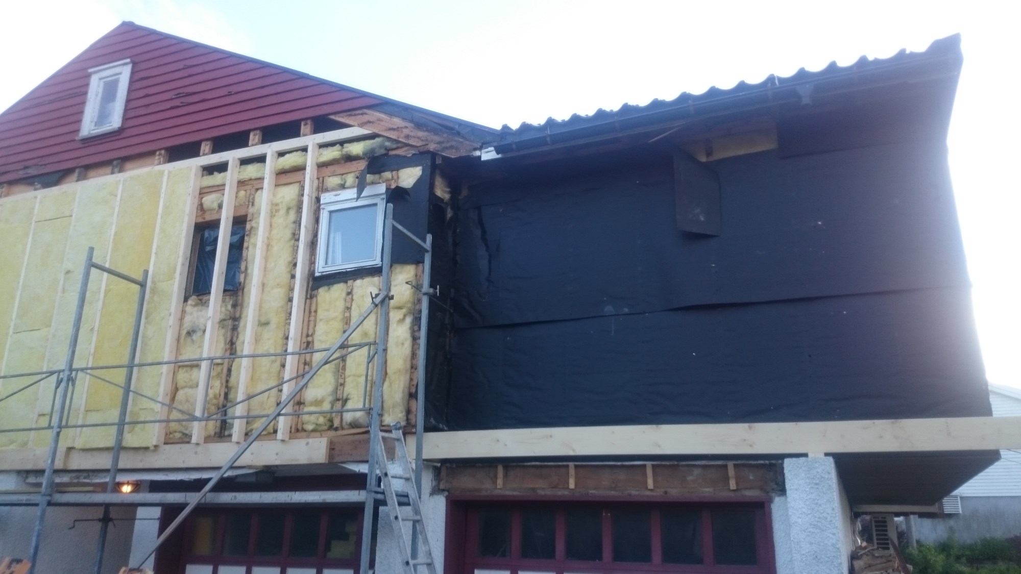 Etter jeg har revet ned det som rives skal, så er planen å legge vindsperre mot ytterveggene og påfore utenpå der igjen da jeg må ha noen rør mot yttervegg for at det hele skal gå opp. Jeg vet at dette ikke er optimalt, men jeg føler meg forholdsvis trygg på at det skal gå bra da veggene er henholdsvis 20 og 25 cm tykke før påforing.