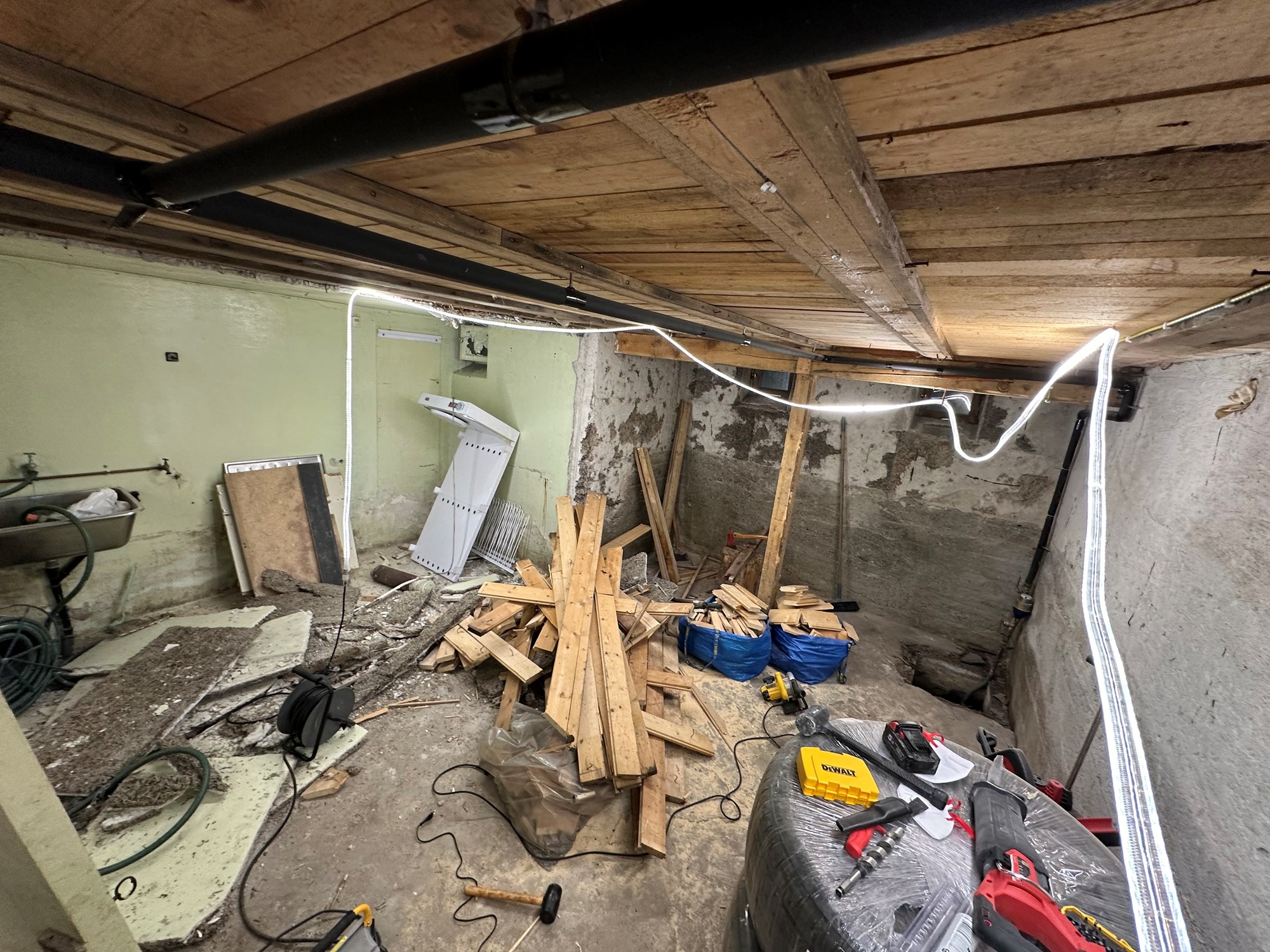 Aller først er det kjelleren som står for tur. Vår ambisjon er å oppgradere fra dagens ca 2,1m takhøyde uisolert kjeller til godt isolert kjeller med 2,4m takhøyde og vannbåren gulvvarme. Vi holder på å tømme kjelleren for rask og river vegger. Begynner å nærme oss ferdig med det. Etter det blir det pigging av gulv og understøping av grunnmur samt utgraving. Vi har tenkt å bruke hele vinteren på denne jobben og gjøre alt, så langt det lar seg gjøre, selv. Både jeg og kona er bygningskyndige og vi har ikke ti tommeltotter, så dette tror jeg skal gå fint:D