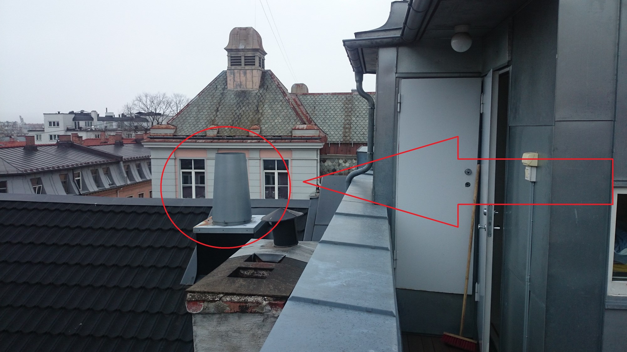 2) Bygge boks rundt avluftsrør (firkantet skjerm 50cm høyere rundt nåværende avluft) med asfaltplater innvendig for å dempe lyd