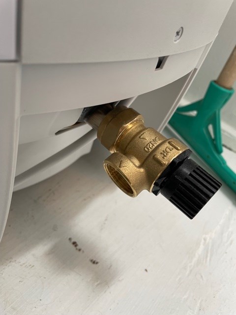 Siden dette er noe du gjør ofte, kan ev sikkerhetsventilen her fjernes og erstattes med en enklere kran og gardenaslange for tømming.