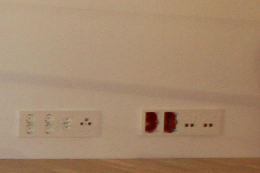Siste bildene viser TV punktene. Fra høyre med 2X2 CAT6, så en dobbel for HDMI / Display port, så en for lyd ( fra dekoder/TV til REVOX ), Kabeltv/Radio/fiber,så en trippel Euro kontakt og så til sist 2 doble stikk på venstre siden.