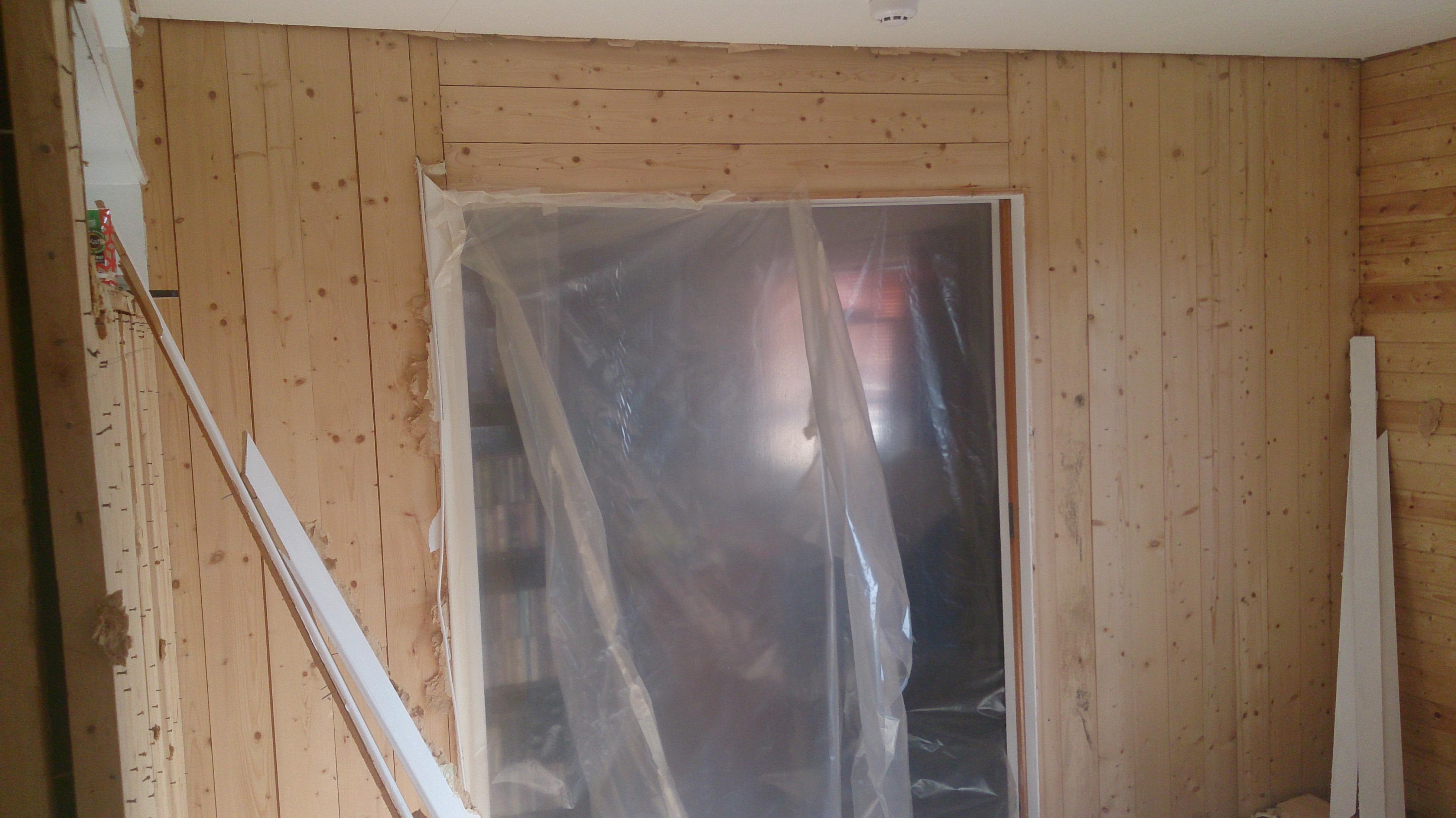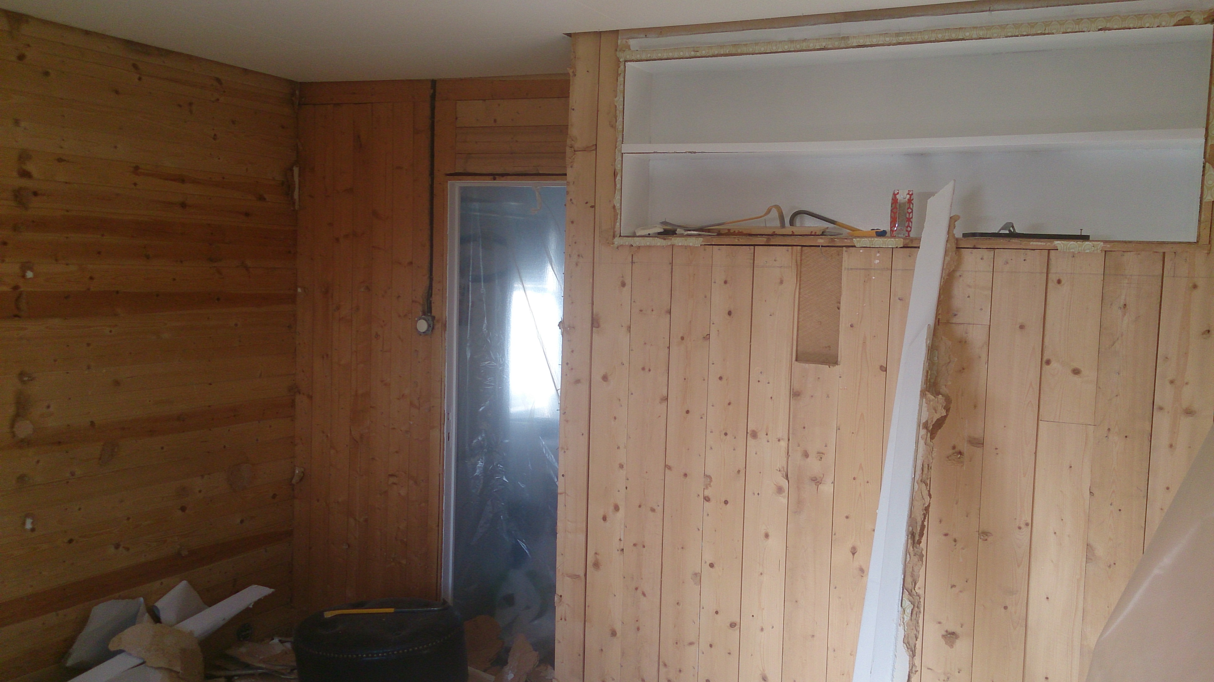 Holder på å renovere ei gammel spisestue som jeg nå skal få bygd om til et soverom. Bor i 2. etg i et gammelt trehus som er oppført på slutten av 50-tallet. Er nok lite som er gjort etter at det ble bygd, men nå begynner ihvertfall moderniseringen. Hadde tenkt å flytte litt på noen vegger om det lot seg gjøre. Etter å ha revet ned flere tonn med tapet og trefiberplater, kommer jeg endelig inn til noe treverk.
