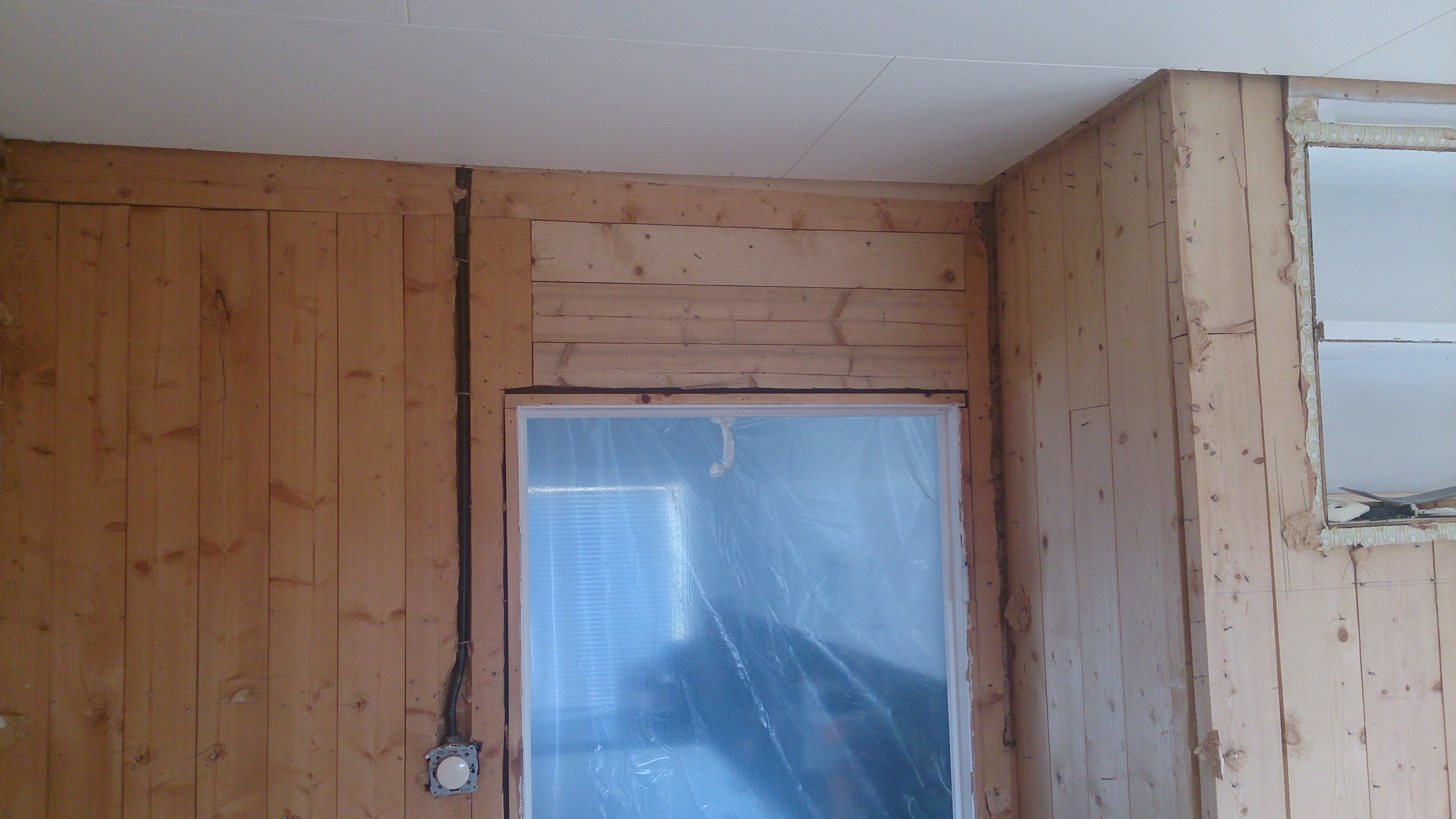 Uansett, det er da de to veggene inne i huset som har 2x4 heldekkende kledd, mens ytterveggene kun hadde vanlig liggende heldekkende plank.