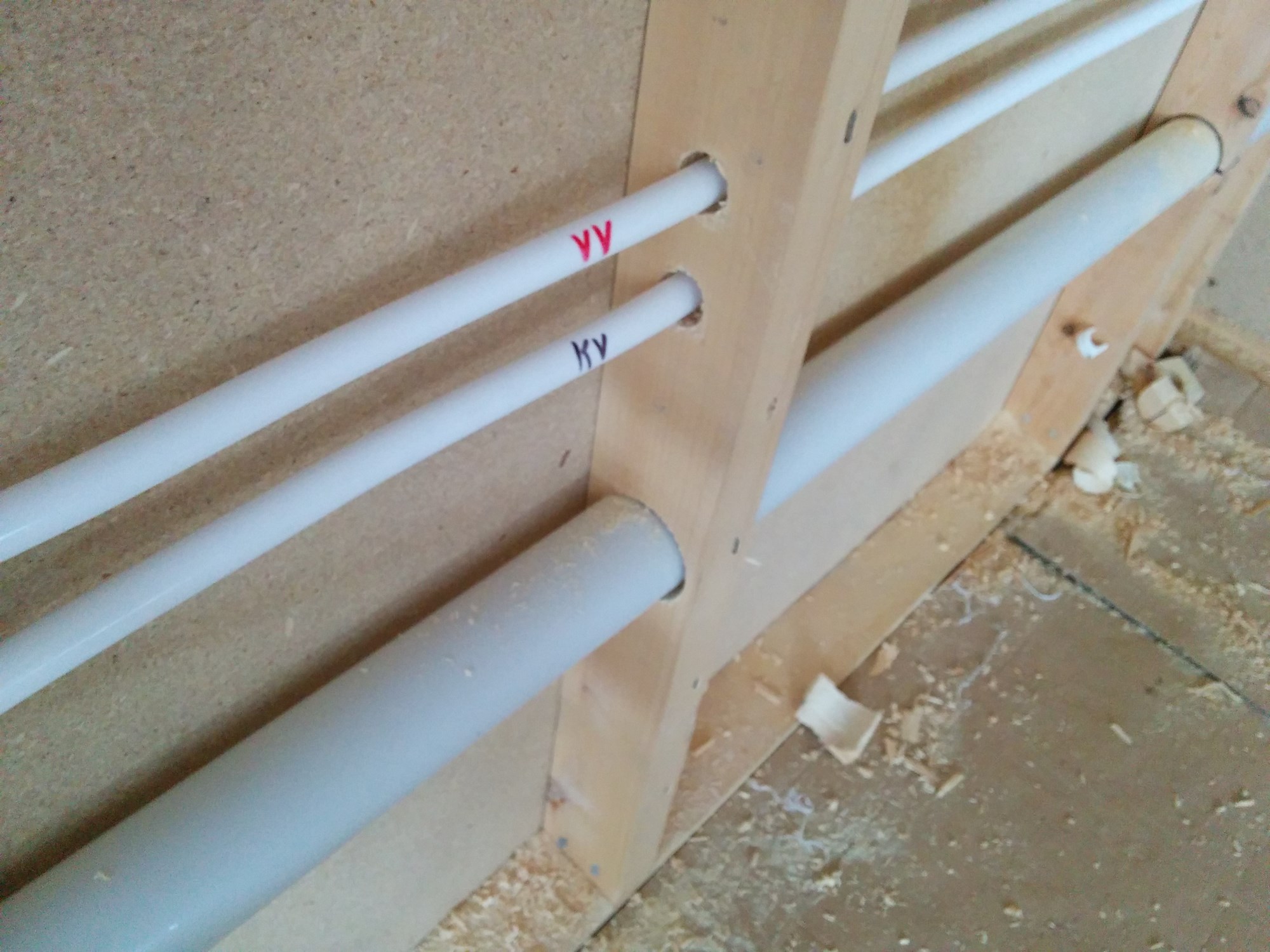 Det legges vann og avløp i vegg for nytt kjøkken hos oss, og ser at rørlegger har lagt 50mm (?) avløpsrør gjennom 76mm stendere. Det blir svært lite treverke på hver side av hullet, og veggen skal bære et kjøkken. Baksiden av veggen er sponplater, mens jeg skal legge gips foran, mot kjøkken. Holder det, mon tro?