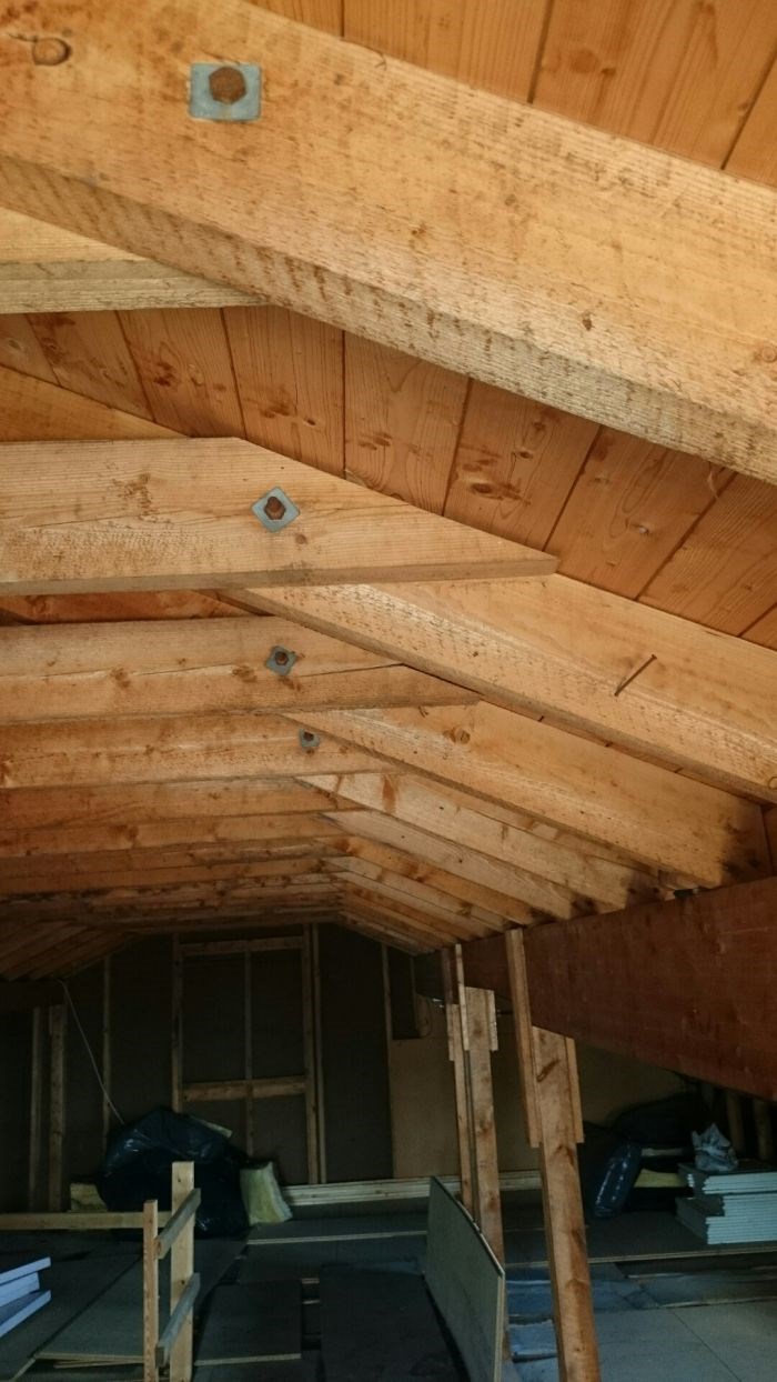 - På tide å isolere. Skal sette opp vindsperreplater med 5cm lufting og så myeglava ekstreme 32 som det er plass til i taksperrene. Også isolere vegger og knevegger, evt lekte ut litt. Er lufting i raftet. Må det være ventiler på kortsidene av huset og skal denne ligge høyere enn takplater og hanebjelkene? Må det trekkes strøm fra sikringsskap i kjeller eller kan man sette opp et skap nr. 2 på loftet koblet til hovedinntak? Vanskelig å borre og legge trekkerrør gjennom to etasjer, kan det bare gå kabler i trappe? Hvor mange kurser? Blir 60 kvm. gulvflate, soverom og tvstue. Takker for alle innspill. Følger opp med flere bilder ettersom prosjektet skrider frem. Estimert ferdig våren '29.