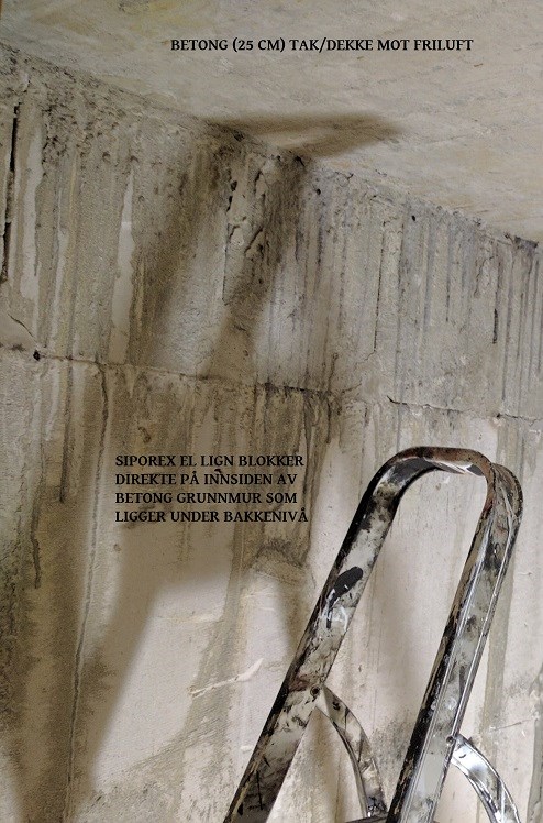 Samtidig er det ingen isolasjon i taket men et 25 cm tykt etasjeskille mot omverden (en veranda) på oversiden, og på 2 sider varme rom samt 2 sider underjordisk plasstøpt betong grunnmur kledd med siporex på innsiden.