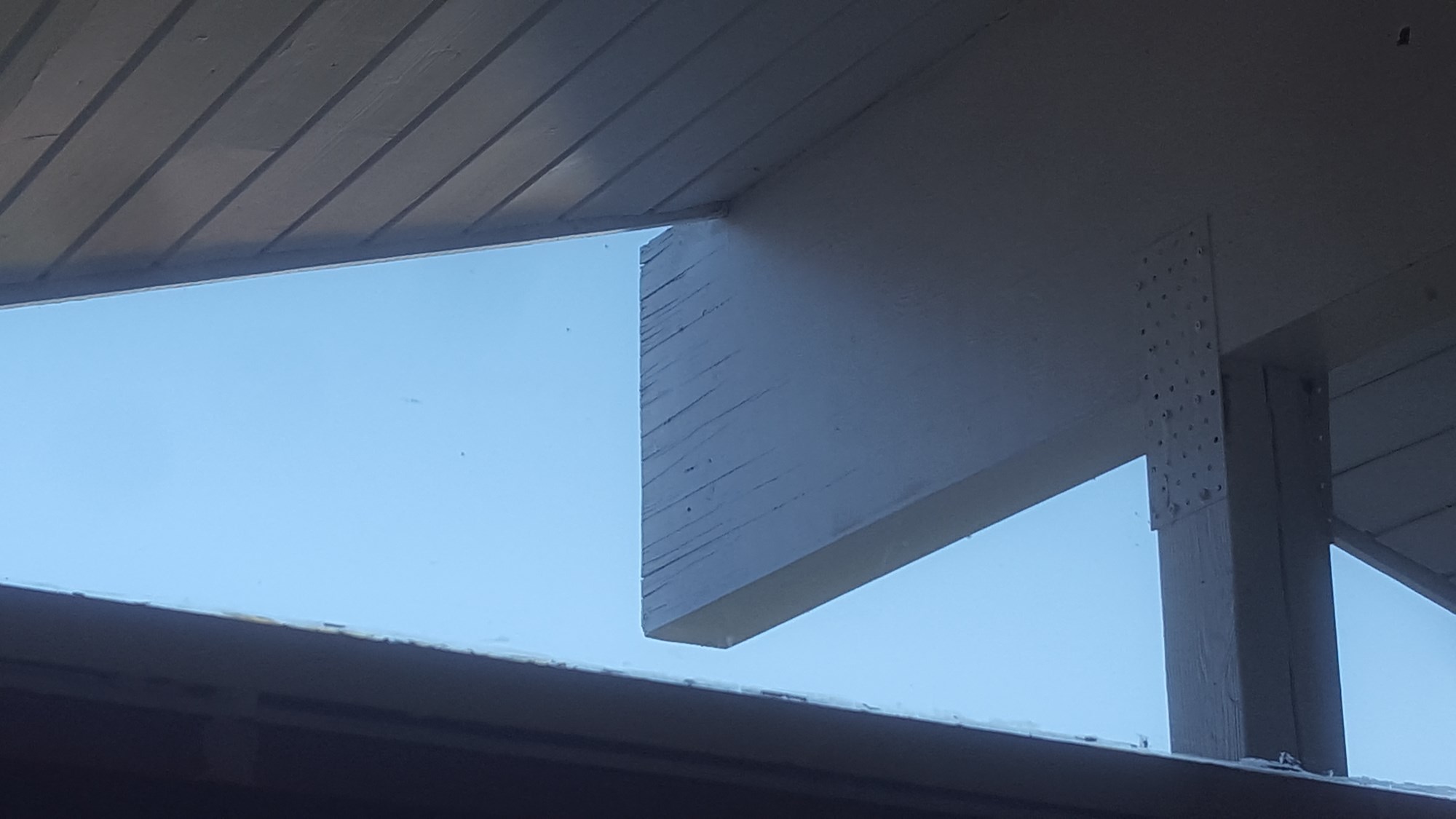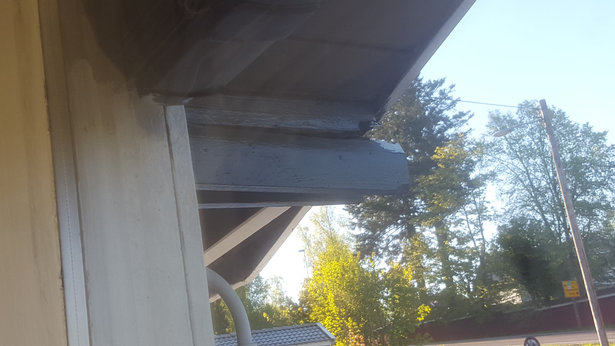 Det førstebilde er en drager som går på siden av huset (ved husveggen). Denne ser det ut til at har fått en skade med muligens råte.